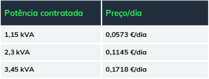 A aplicação da taxa de IVA de 6% incide sobre as seguintes potências e valores diários: