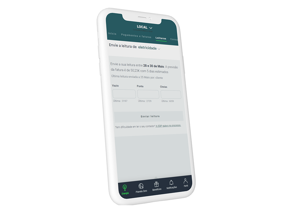Através da App EDP, pode enviar a sua leitura de eletricidade e gás natural e nós dizemos-lhe quanto pagar na próxima fatura.