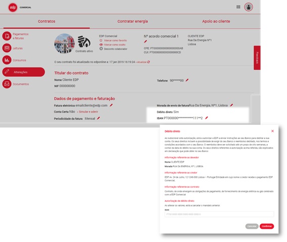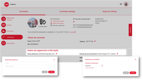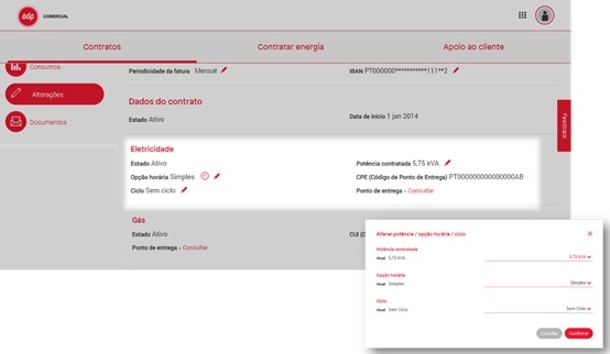 Pode consultar o seu contrato em detalhe e alterar algumas das suas opções, nomeadamente a potência contratada, a opção horária, o meio de pagamento e o tipo de fatura na sua área de cliente.