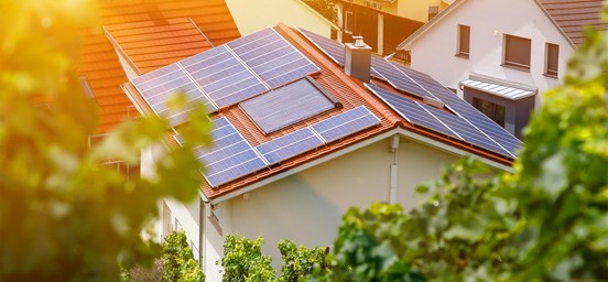 Sol a brilhar a incidir sobre um painel fotovoltaico colocado num telhado