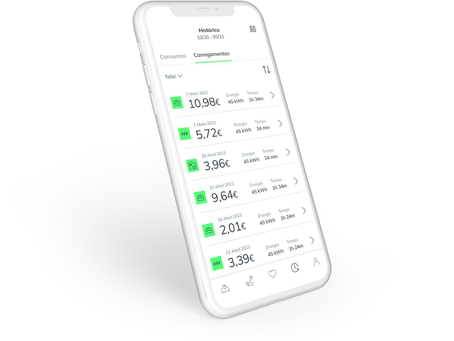 Tenha acesso ao histórico de todos os seus carregamentos passados e respetivos consumos